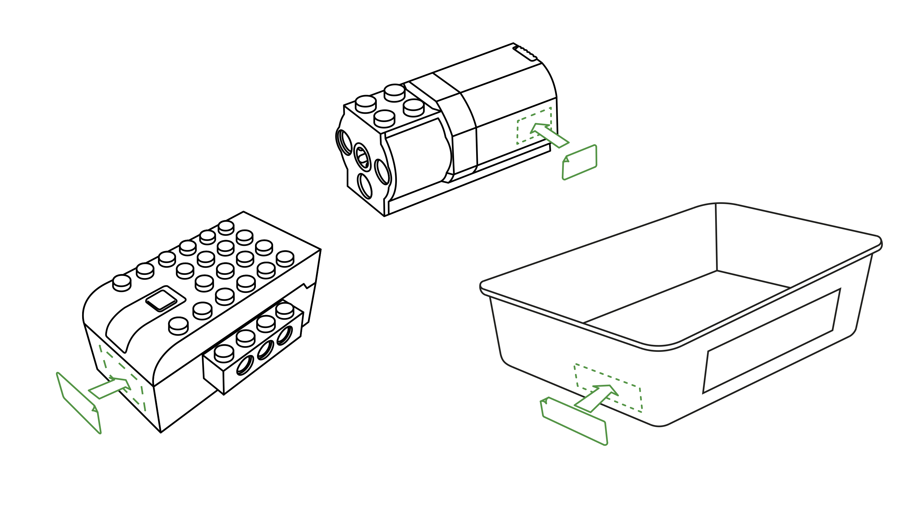 教室で複数のWeDo 2.0 基本セットを管理しやすいよう、それぞれの箱とスマートハブ、モーターに番号をつけておくことをおすすめします。これによってどのパーツがどのセットのものなのかがわかりやすくなります。